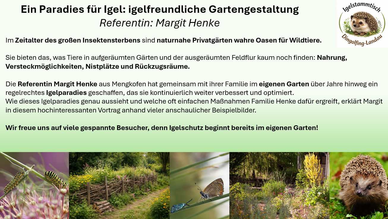Ein Paradies für Igel: igelfreundliche Gartengestaltung Referentin: Margit Henke